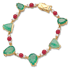 san hô, lục bảo ngọc, kim cương, ngọc thạch trắng, và vàng, tượng trưng cho niềm chân phúc vĩnh cửu khi