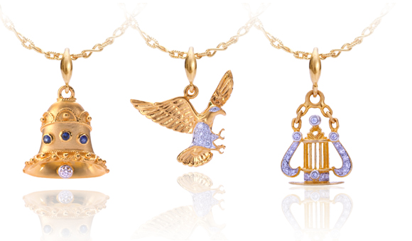Lủng lẳng từ chiếc vòng vàng là chín tấm lắc nhỏ: phi cơ,