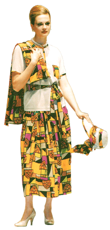 in the sun wearing these bright silk prints. The design features