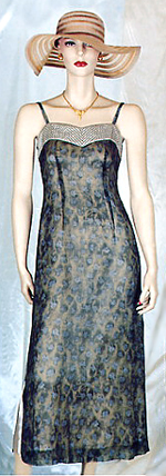 noble and refined silk celadon dress is bordered with a quilted