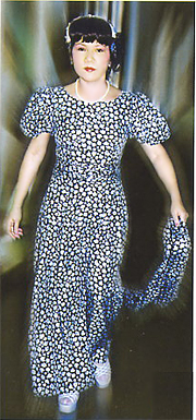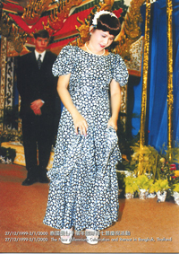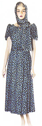 dress made of light blue silk fabric with light blue floret
