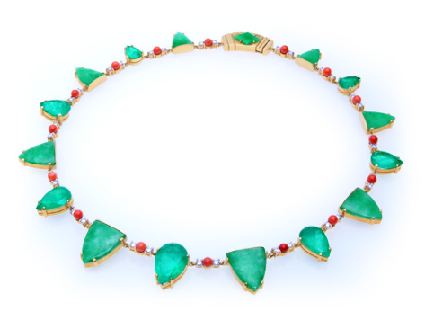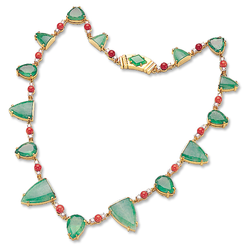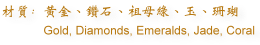 rich combination of coral, jade, diamonds, emeralds and gold represents