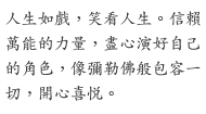 ◆『彌勒』意思是快樂與愛力,彌勒佛就是愛力佛,帶給人們愛力和快樂,任何人能做到這樣,都可以算是彌勒佛。你自己應該當彌勒佛,把愛力、快樂帶給大眾,才算是紳士、大丈夫。」(原文為英文)