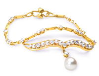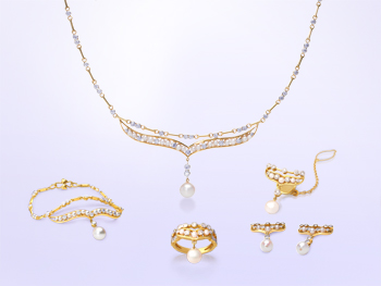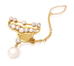 arcs carved in gold transform into elegant wings that carry a Muni-pearl