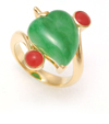 Red fruit, ripe and plump, shines with a rosy luster matched by elegantly shaped green leaves. Through superb craftsmanship the fruit and leaves have been arranged in seamless designs that impart a divine, elegant aura, much like that of a hermit who has reaped the harvest of spiritual cultivation after years of silent practice.