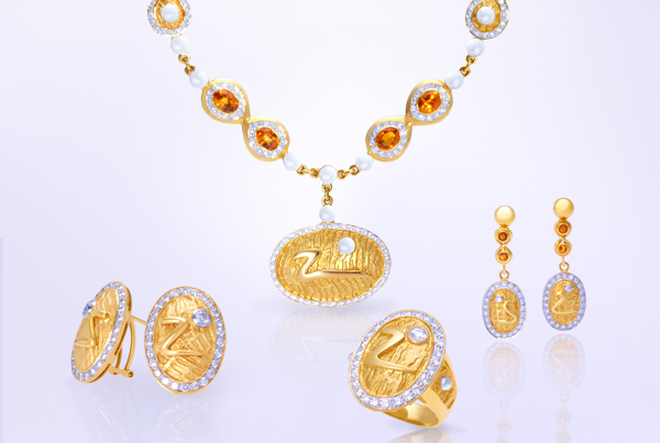 Combining topaz, moonstones, diamonds and gold, this brilliant piece of jewelry signifies that all the negative desires are dissolved into the magnificent light of God.